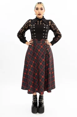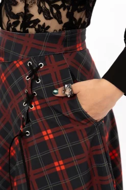 • Elaborada en lino vértigo sublimado con estampado de cuadros rojos sobre un tono gris verdoso oscuro.